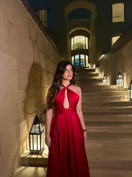 Red Halter Neck Jumpsuit