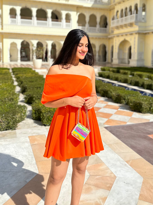 Orange Flared Mini Dress